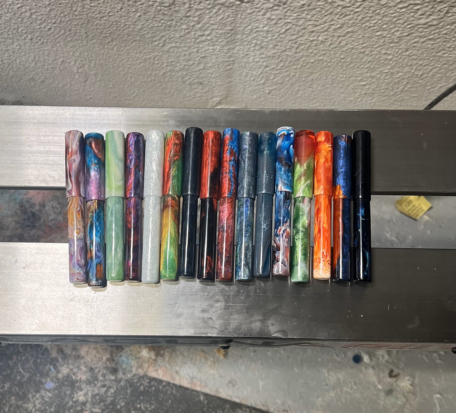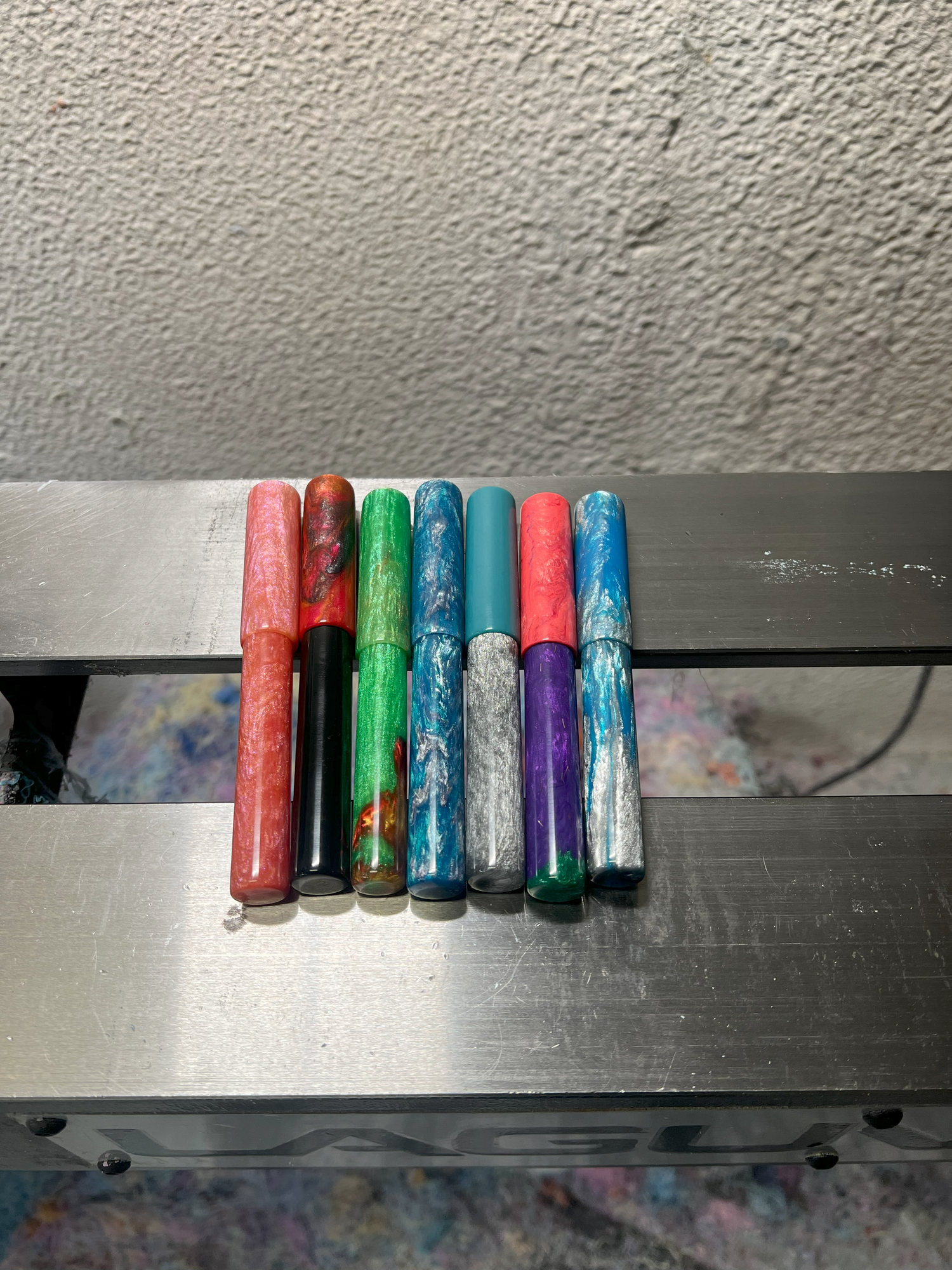 The i5 is named after one of my favorite engines, the Inline 5. This model features a #5 nib, 12mm threads, a straight profile and flat finials. The i5 is the smallest model in the current catalog. Check out the show room to browse available i5 pens.